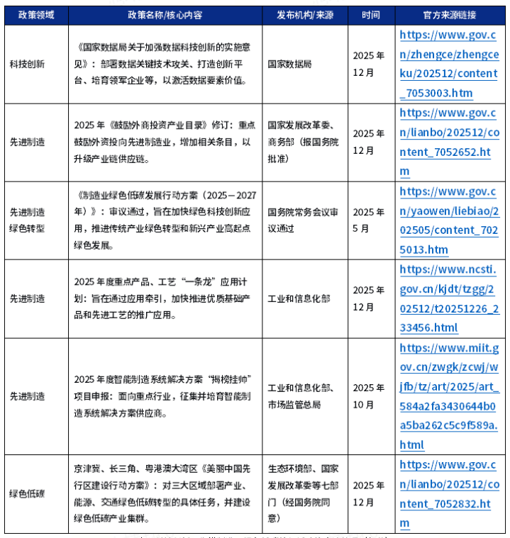 表:科技创新、先进制造、绿色低碳等领域政策支持整理(部分)