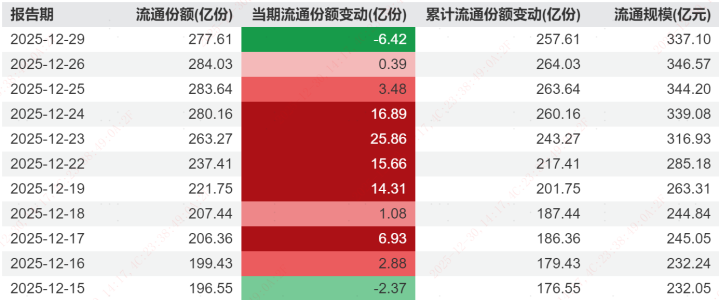 近期市场的资金动向为观察机构态度提供了另一个视角。公开数据显示,以中证A500为跟踪标的的ETF产品在近期出现了大规模的资金净流入。据统计,截至2025年12月29日,挂钩中证A500的ETF产品合计净流入资金超过800亿元。其中,前几只头部产品如A500ETF易方达规模持续攀升,截至12月29日规模已达337.10亿元,流通份额达277.61亿份。该ETF在近期曾连续9天实现流通份额增长,合计吸金逾百亿元。