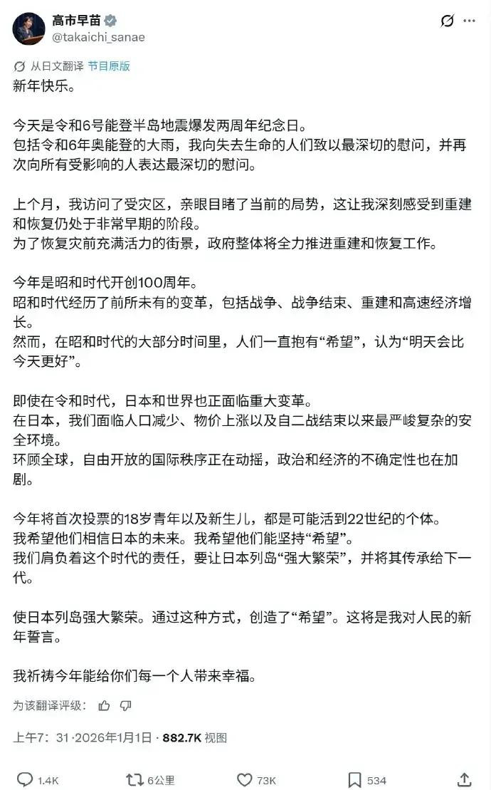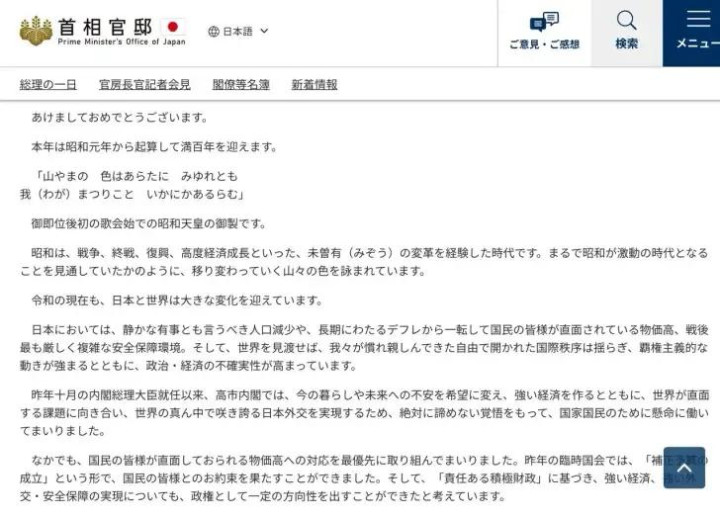 而我们的邻国日本也是如此,总想干涉我们对台湾的收复,尤其是在2025年这一年,高市早苗当上首相后更是大言不惭。没想到2025年过去,高市又故技重施,在新年的第一天发表了新年贺文。在这篇长文中福盈策略,她终于不再回避日本的现实困境,公开承认日本正面临物价持续上涨、人口加速减少以及自二战结束以来最严峻复杂的安全环境三大难题。