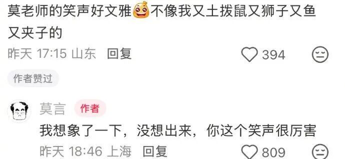 不少网友在评论区“热梗频出”,莫言也一本正经地回复。
